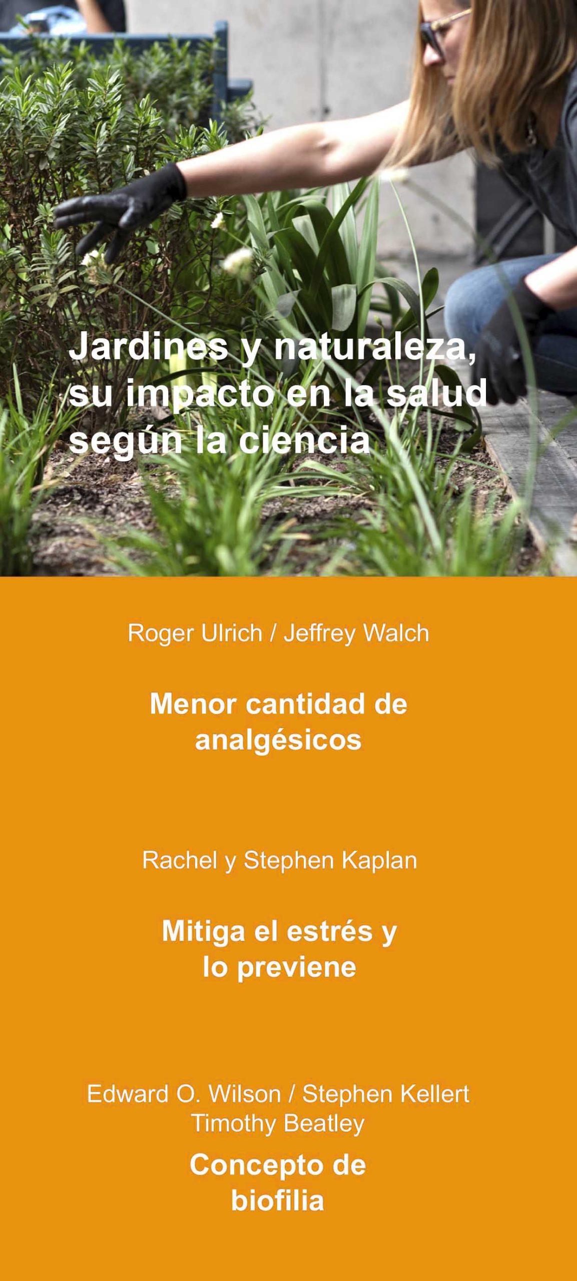 El poder de la naturaleza sobre las emociones del ser humano es objeto de investigación científica. Los efectos de exponerse a espacios con floración, árboles, zonas curvas, luz natural, entre otros elementos, activan los sentidos, favorecen un mejor ánimo y contribuyen al proceso de recuperación de los pacientes.